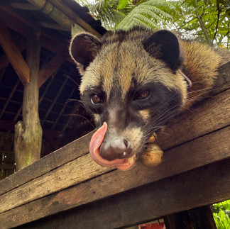 Then came the highlight of the tour: meeting a luwak—a strange, oversized ferret-looking animal that poops literal coffee beans. Yes, poops them. Apparently, this process makes the coffee incredibly strong, smooth, and expensive.